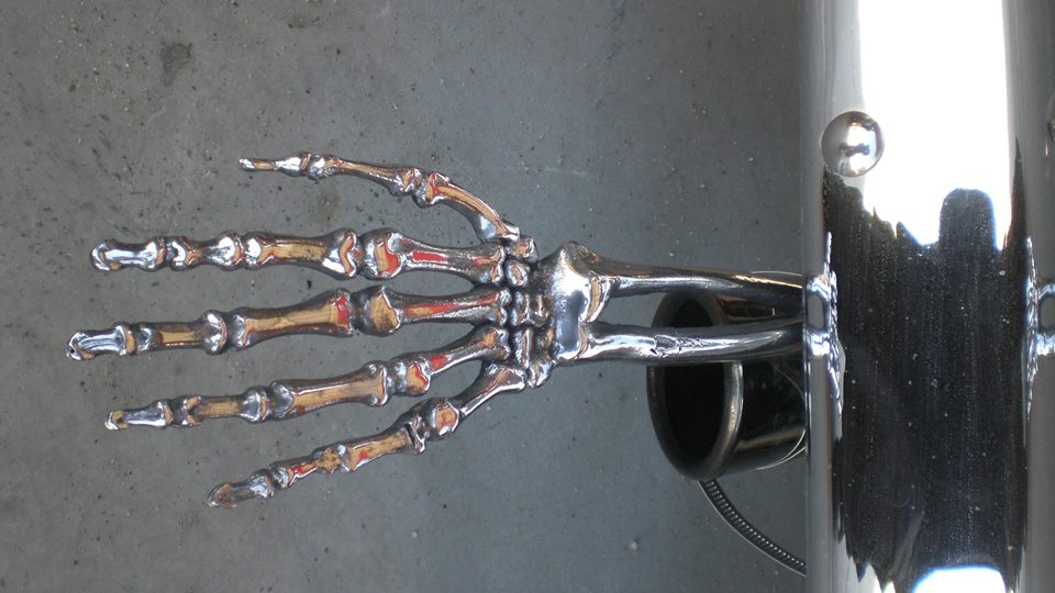 Each skeleton hand is hand made out of aluminum with great detail & are one of a kind.